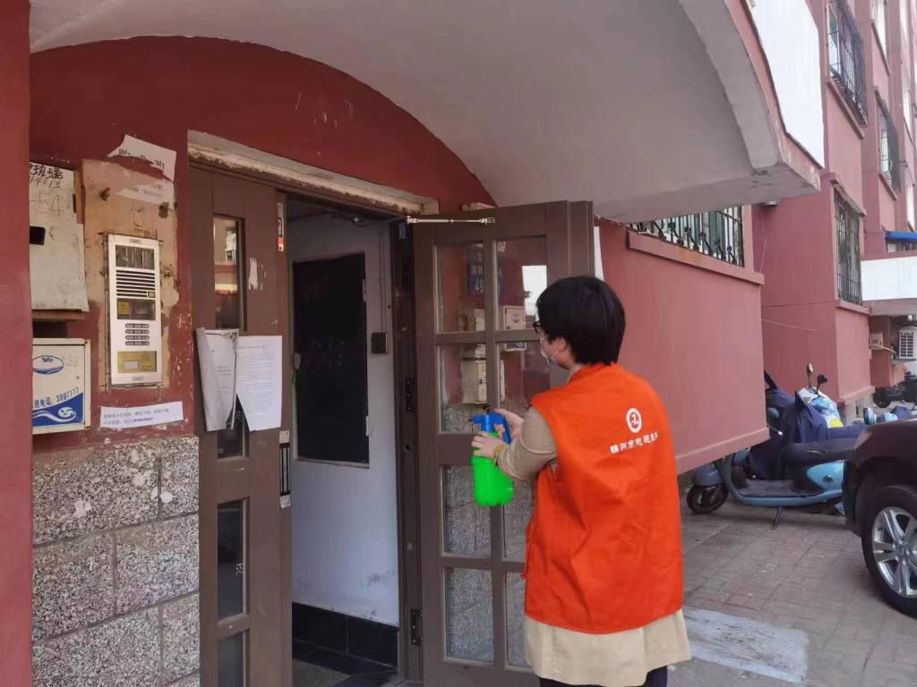 民盟盟员、药学院教师董秋菊主动参与锦州石桥子街道防疫工作,从事楼道消杀、排查异地返锦人员、测温等工作。