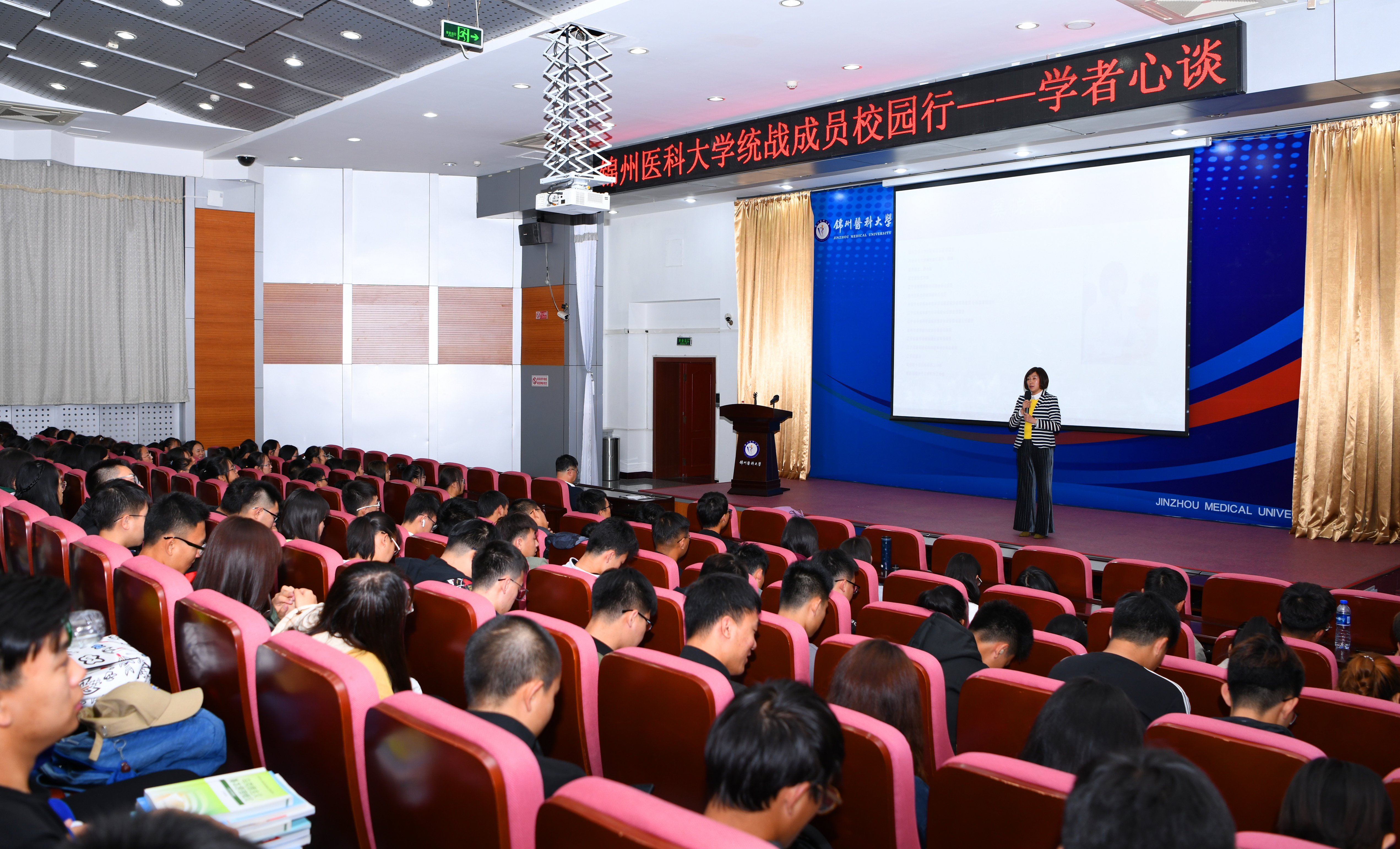 为深入践行“不忘合作初心,继续携手前进”主题教育活动,充分发挥学校党外高级知识分子的优势为学校服务,10月7日,党委统战部举办了2019年“统战成员校园行——学者心谈”活动,邀请辽宁省人大代表、致公党锦州市副主委、锦州医科大学糖尿病中心主任、锦州医科大学附属第三医院副院长奚悦教授为学生们带来一场精彩的讲座。来自2019级第一临床和第三临床的220余名学生参加活动。活动由党委常委、党委统战部部长郝慧生主持。